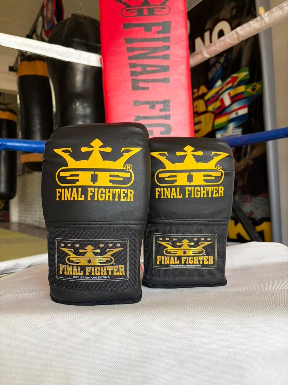 Guantines resistentes y cómodos, con acolchado que protege manos y muñecas. Disponibles en Talle 1 y Talle 2, ideales para entrenamientos en bolsa de boxeo, kick boxing y muay thai.
